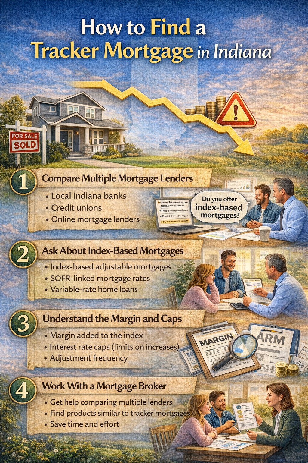 If you’re specifically interested in a tracker-style mortgage in Indiana, you’ll want to talk with lenders about variable-rate products tied to market indexes.