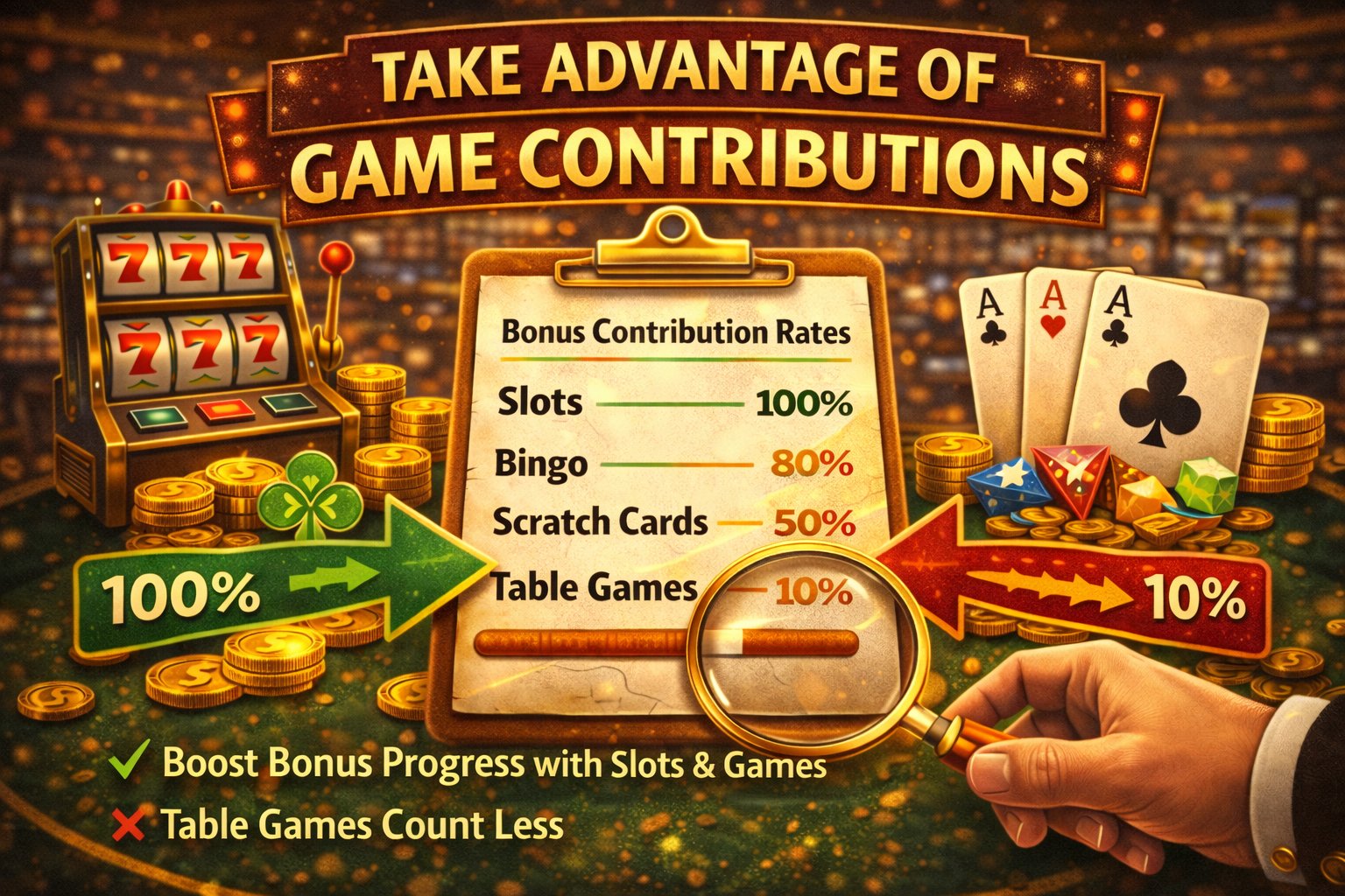 Not every game contributes equally toward wagering requirements.